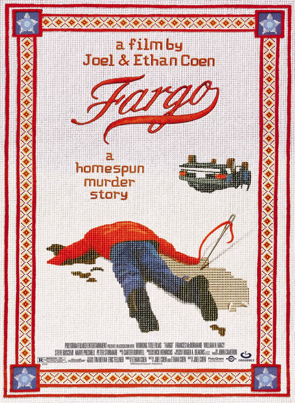 Fargo. En film som jag inte kommer ihåg så mycket från förutom att jag gillade den skarpt. Så mycket minns jag i alla fall. Det är ju vanskligt detta med att se om filmer som man gillade en gång i tiden. Det kan slå fasligt fel. Ämnet kom upp på en filmspanarträff häromsistens. Vi snackade om att skriva en personlig topp 100 över alla filmer. Hur jämföra filmer man sett för länge sedan som endast lever i ett nostalgiskt skimmer med filmer man nyligen sett? Och vill man ens se om vissa av sin ungdoms favoriter? Det är ju inte helt ovanligt att man inser att de är risiga.