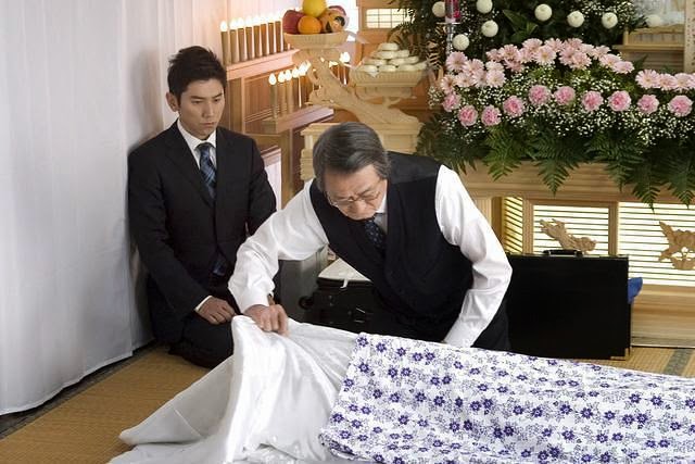 Filmen är både rolig, en svart och ofta torr humor som kryper på en, och väldigt sorglig. Daigo är en konstnär ut i fingerspetsarna och med lika stor känslighet och passion som han spelade cello, lika bra bli han på att hantera de döda och ge dem ett värdigt avsked. En tradition i Japan är att familj och vänner tittar på när Daigo och hans gamle buttre boss arbetar med kropparna. Givetvis är de scenerna ofta mycket känslosamma. En del av de anhöriga reagerar med ilska, en del med bara sorg. Daigos stillhet och totala hängivenhet till hantverket gör dock underverk i dessa scener.